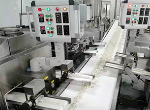 制作麻花的原始材料從進入生產現場開始,經過和面機-四頭液壓麻花機-油炸生產線-包裝機-系列的連續流水化生產線。生產線由工件傳送系統和控制系統組成,組成連續、高效...